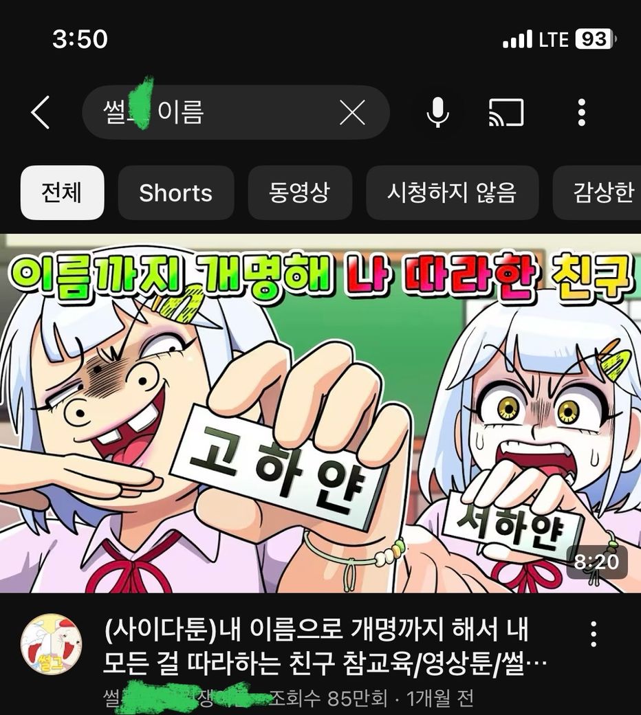 썰쟁이 유튜브 만화에 보면 고춘자랑 서하얀 이라는 여학생 캐릭터가 있는데요. 춘자가 하얀이꺼 행동이나 패션이나 모든것을 따라한대요.