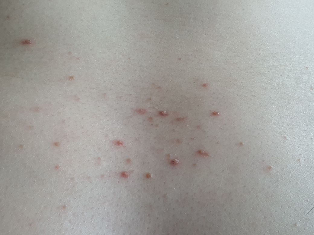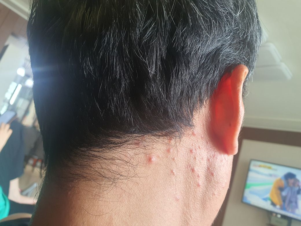 사진만 봤을 때는 대상포진의 가능성은 떨어지고 모낭염일 가능성이 큽니다.