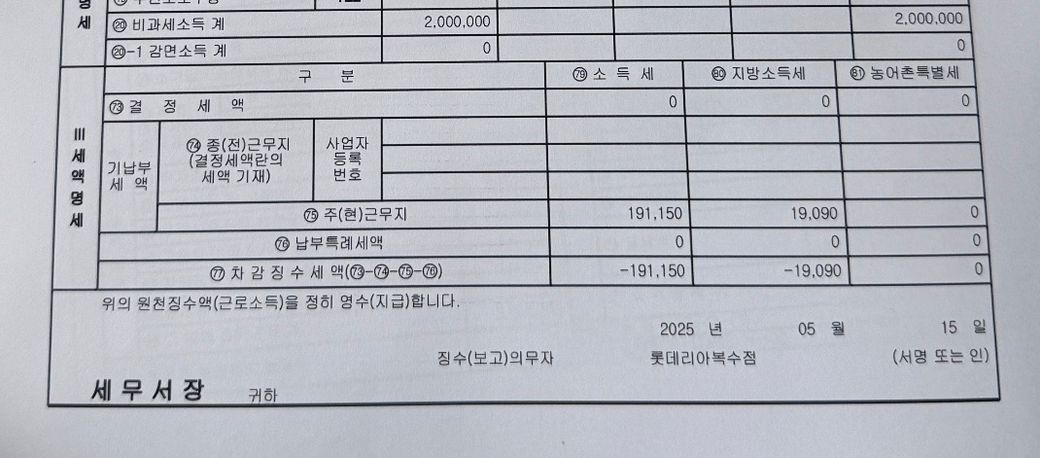 올려주신 서류는 종합소득세 신고서류가 아닌 근로소득원천징수영수증으로, 연말정산을 하신거라면 차감징수세액은 회사에서 환급받는 것이 맞습니다.
