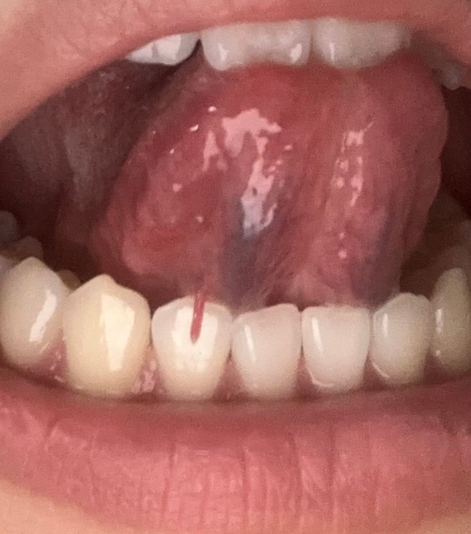 보시는대로 혀 밑에 저런 실같은 살을 발견했습니다. 눌러보니까 피가 몰리는것도 보이고 통증도 있는 진짜 살이더라고요…
