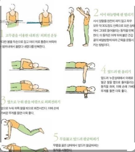통증이 계속 심하거나 팔이 더 안 올라가면, 시간 내서 "주사치료.물리치료" 받는 것이 회복에 중요합니다.