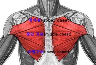 가슴근육의 경우 크게 세가지로 나뉜다고 알고있습니다.