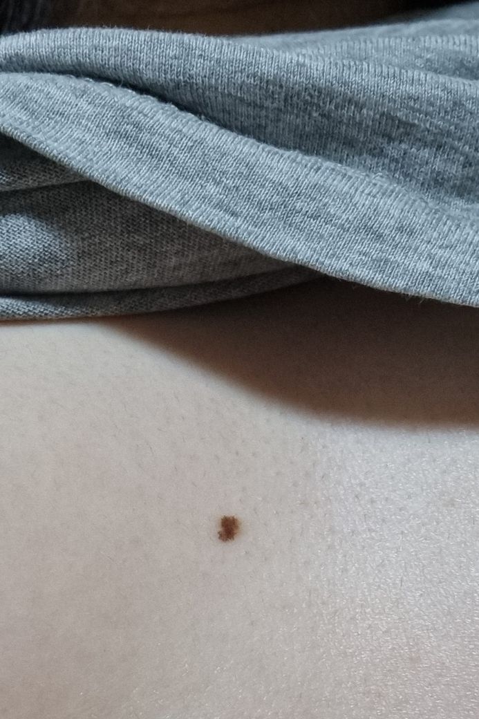 위치는 흉통쪽이며, 정확히 기억은 안나지만 생긴지 몇 년 되었고 처음에 비하면 크기가 확실히 커지긴 했습니다.