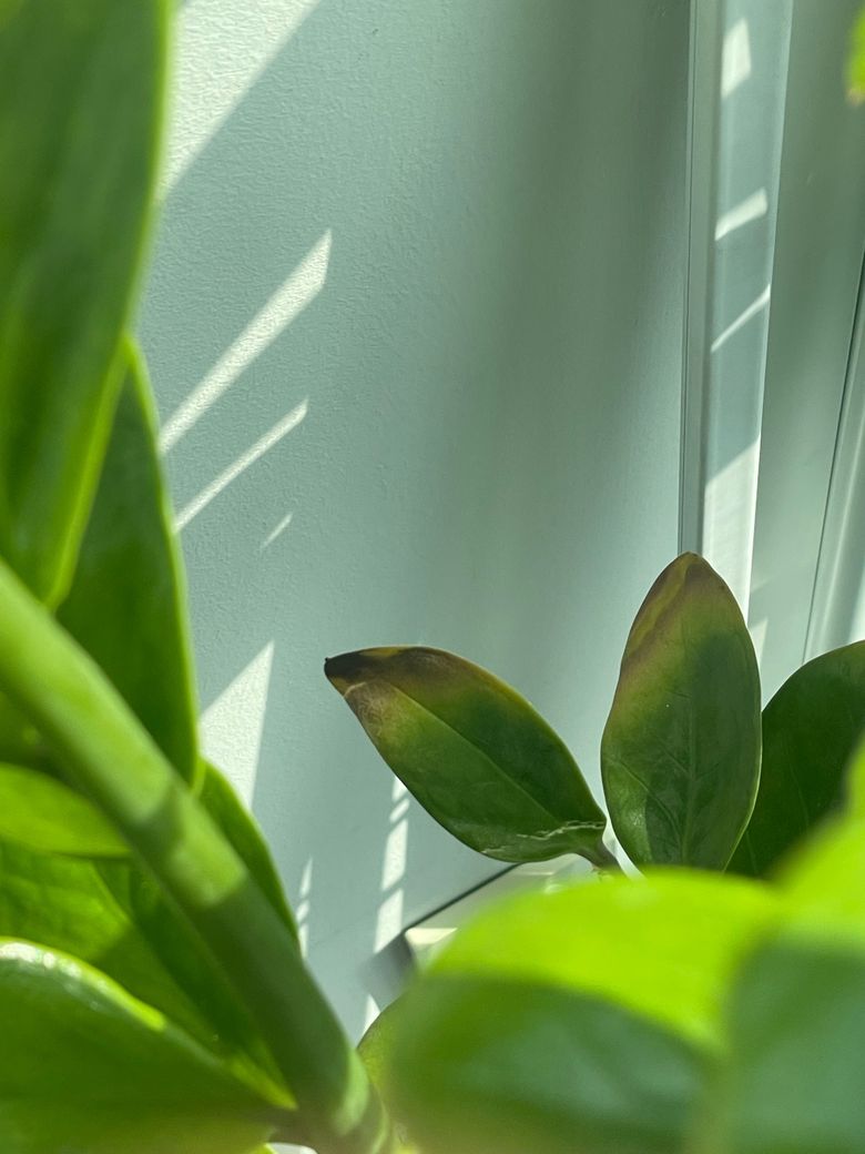 저도 금전수 키우는데 금전수 잎 끝이 갈변하는 건 주로 직사광선, 건조, 영양 불균형 때문이에요. 잎 끝이 탄 것처럼 변한 건 이미 손상된 부분이라 잘라주는 것이 좋습니다.물 주기는 겉흙이 마른 뒤 적당히 주고, 직사광선보다는 밝은 간접광에 두세요