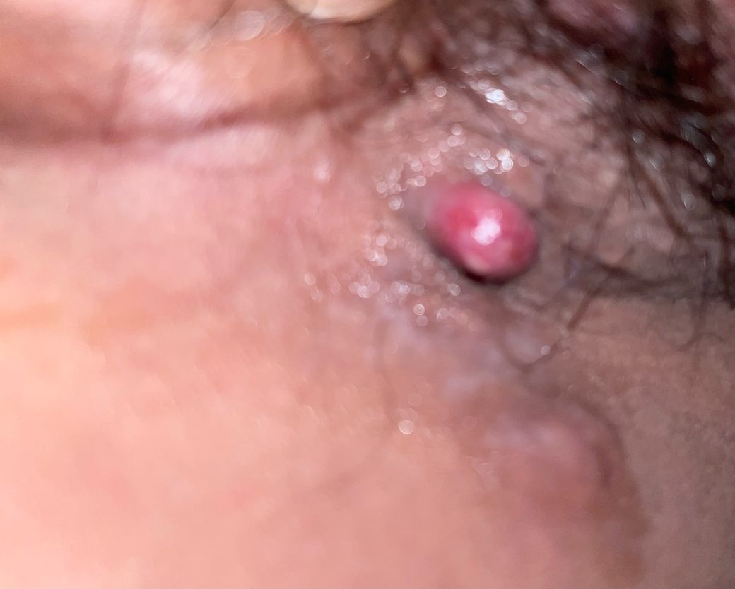 쥐젖(연성 섬유종)은 보통 피부색 또는 갈색이고 통증이 거의 없으며, 따갑거나 쓰린 증상은 드뭅니다. 반면 사진처럼 붉고 표면이 벗겨진 상태에서 통증과 자극감이 반복된다면, 외음부 피부에 생긴 염증성 육아종(화농성 육아종), 반복 마찰로 인한 외음부 피부 폴립, 또는 모낭염·피부염이 반복되며 튀어나온 병변일 가능성을 고려합니다. 팬티라인은 지속적인 마찰과 습기로 이런 병변이 커지거나 쉽게 아플 수 있습니다.