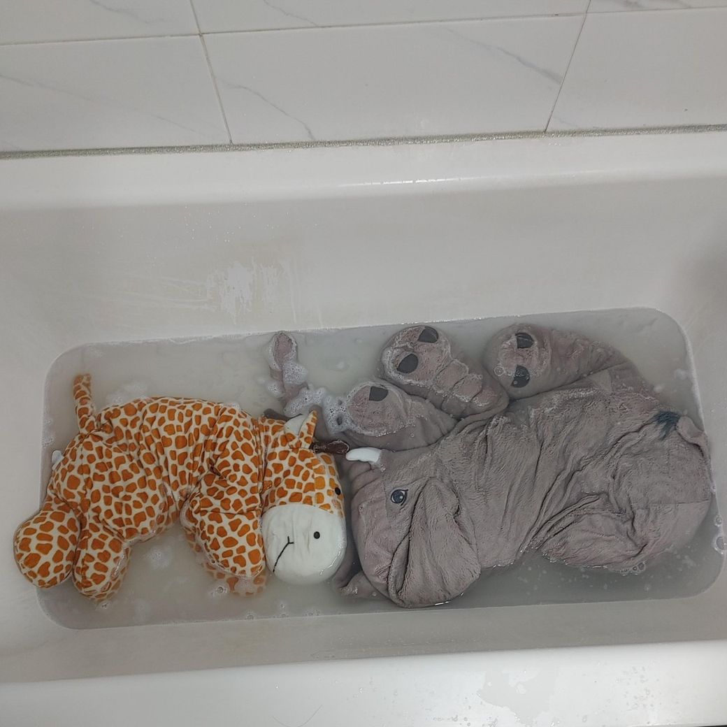 저희 집에 기린 인형베게와 코끼리 애착인형이 귀엽지만 너무 안고 자서 손빨래를 조물조물해서 빨려고 해요.
