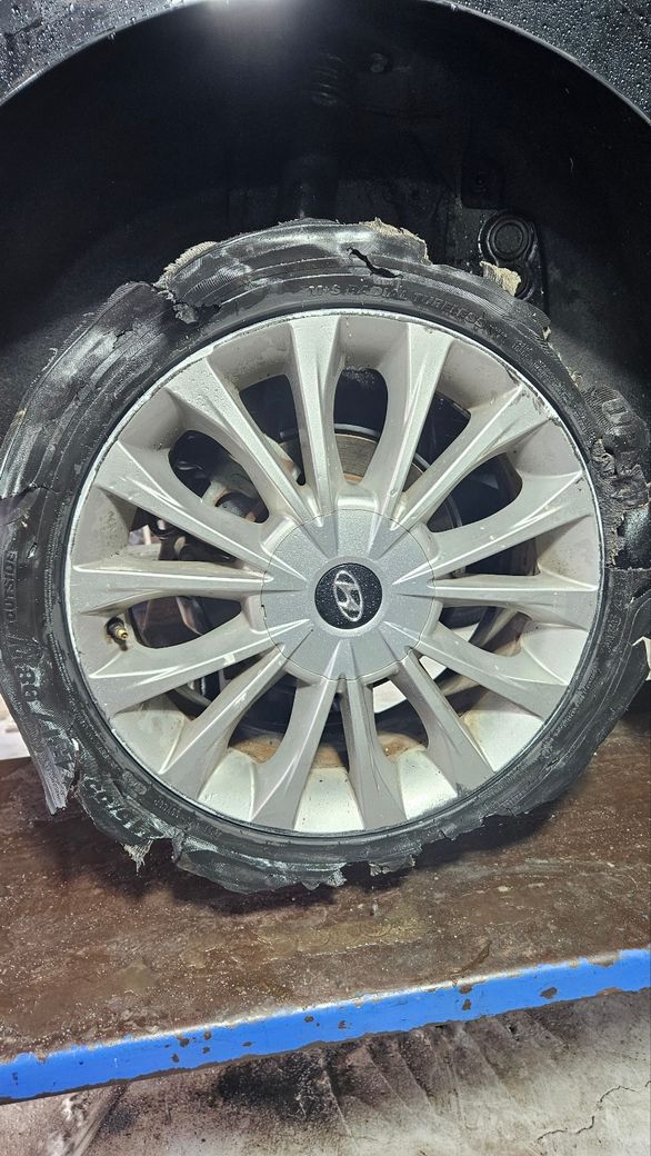 근처 타이어 가게로 가서 차량을 리프트 띄워보니 범퍼.쇼바.휠.타이어 이렇게 손상이 갔다고 하더라구요