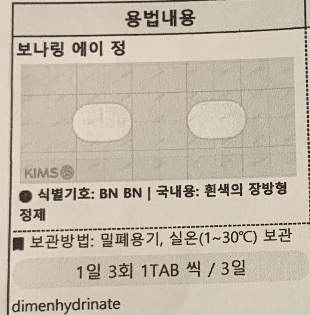 보나링에이정은 어지럼증 증상을 잡아주는 약으로서 어지럼증이 나타날때마다 복용할 수 있습니다.