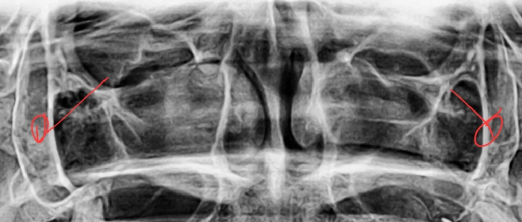 현재 사진에는 근육은 관찰되지 않습니다. 말씀하신 부위는 상악동의 상연 및 안와의 하연일 가능성이 높아 보입니다. 해당 뼈가 없다면 상악동과 다른 부위가 개통되어 염증 등이 쉽게 생길 수 있으며 위쪽 감염의 통로가 될 수 있습니다. 다만 현재 상태에서는 파노라마 뿐만 아니아 CT 자료도 필요합니다.