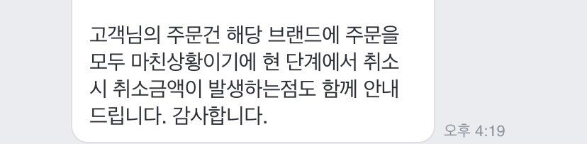 그 마켓에서 해당 브랜드에 주문을 마친 상태라고해서 취소시에 취소금액이 발생한다고 하는데 취소금액을 꼭 지불해야하는건가요..????