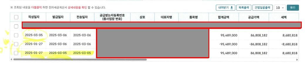 당초 : 작성일 - 1월27일 / 발급일 - 3월5일로 지연발급세금계산서 발행했습니다.