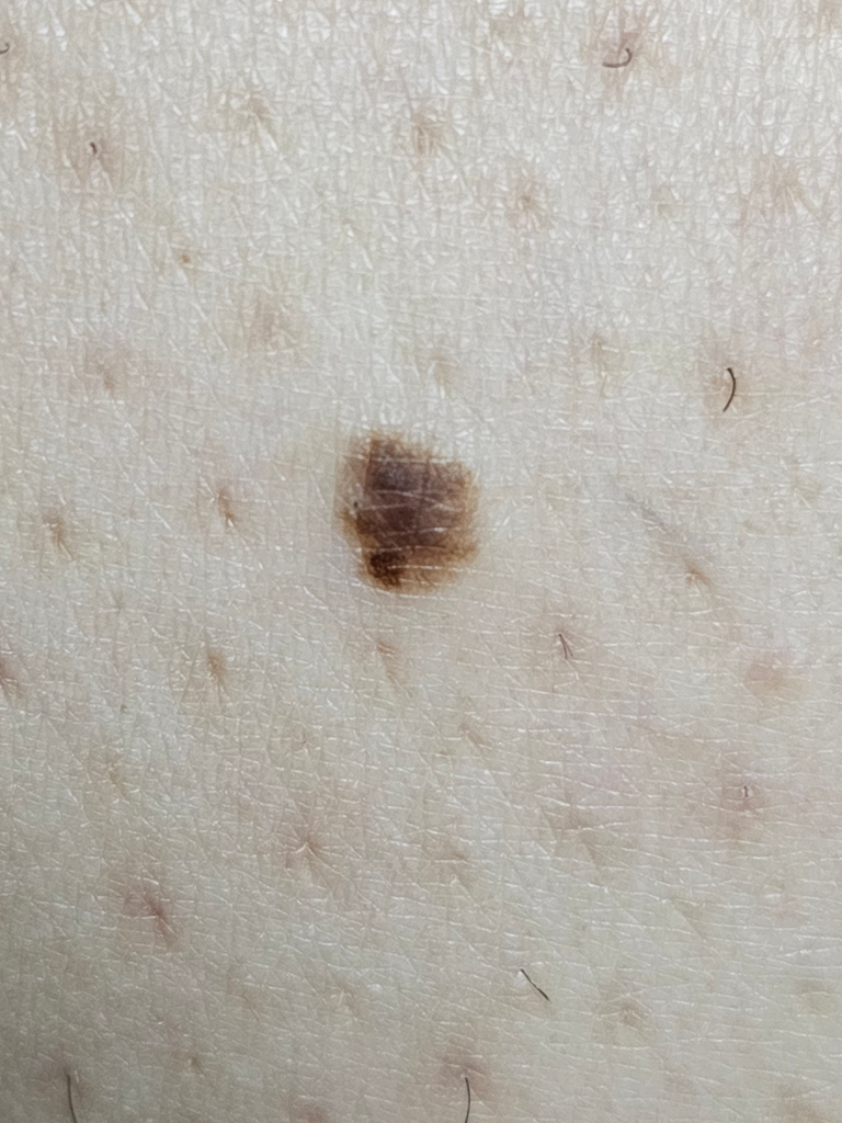 점의 생긴 모양만 보아서는 흑색종의 가능성을 완전하게 배제하기는 어렵겠습니다. 가능성이 매우 높아 보이지는 않지만 조직 검사를 통해서 확실하게 감별하는 것이 안전할 것으로 사료되긴 합니다.