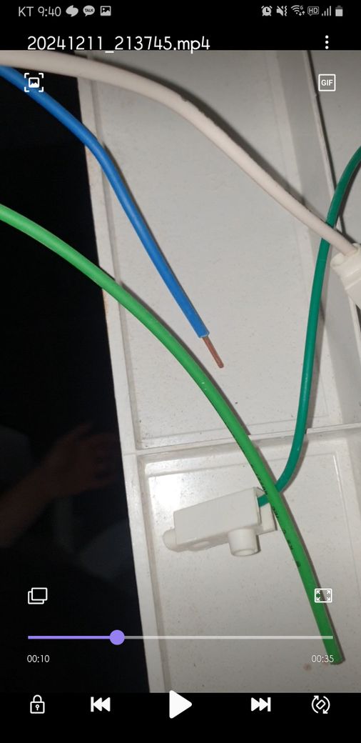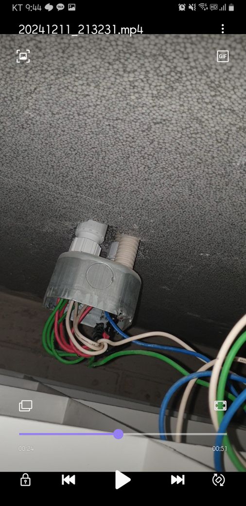 장위 사진입니다 1번째 사진이 화장실안 led전등에서 올라오는선이고 2번째사진에 보이는 파란색과 초록색선이 천장에있는 선에서 이어져오는선입니다
