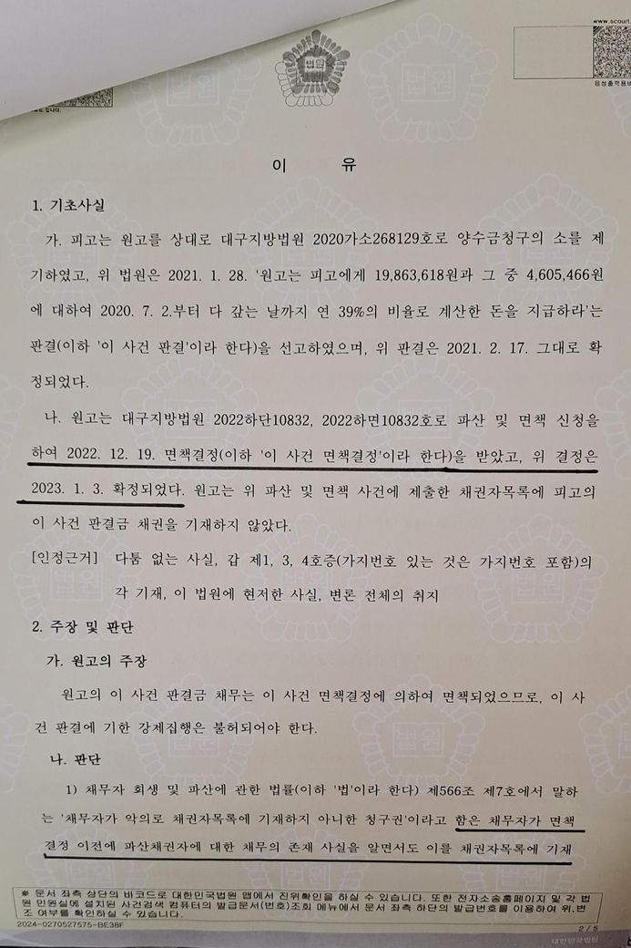 개인파산면책은받았는대채권하나을채무자귀책으로못받았습니다.면책소송하였으나