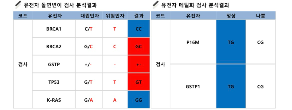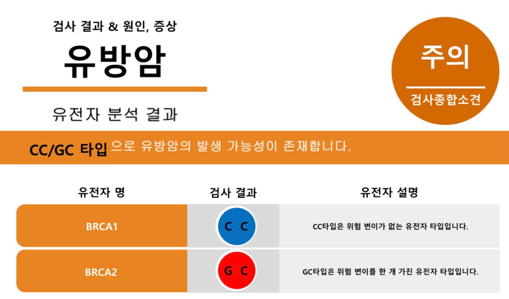 BRCA1은 CC, BRCA2는 GG가 변이가 없는건데 작성자분은 BRCA2 유전자가 GC로 하나가 변이가 있으신겁니다.