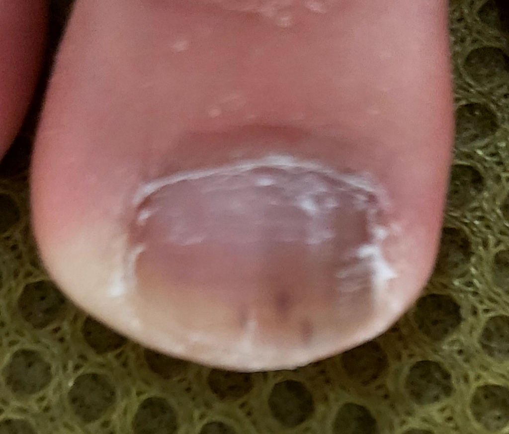 발톱무좀인지 우선적으로 살펴봐야 할 듯 합니다. 곰팡이균은 발가락과 발톱의 변색까지 일으킬 수 있습니다. KOH검사 후 확진 되면 피부과 상담 후 복용약 연고와 함께 치료하면서 발의 땀을 줄이고 환기를 시켜주어야 합니다.