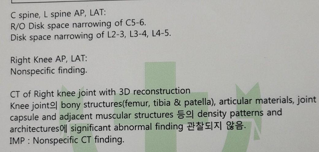 무릎 엑스레이.CT 찍었고
