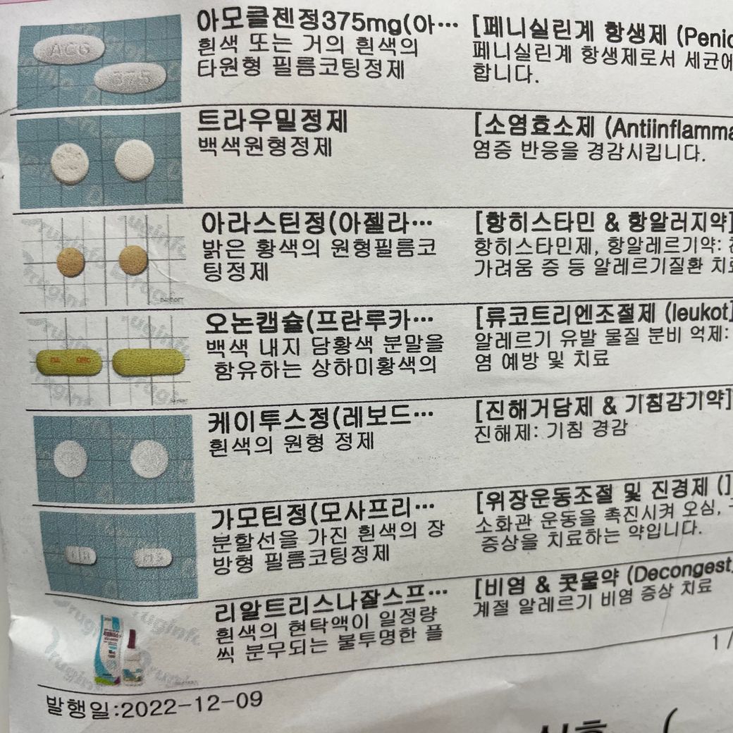 혹시 해당 약 중에 이런 증상을 유발하는 약이 있는지도 확인해주시면 감사하겠습니다.