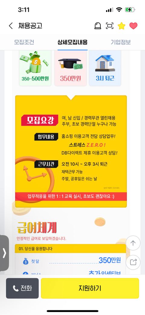구인공고상 어떤일을 하는지모르나 콜센터상담업무라면 월급이 과다해보이므로 허위공고 유의하시기바랍니다.