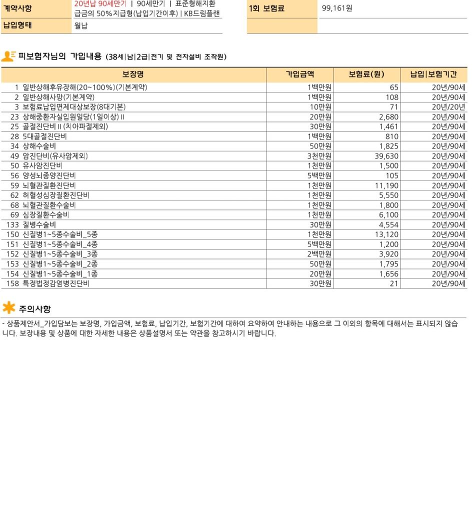 설계사 통하여 가입 견적 받으신 것 같은데, 아주 평균(노멀)한 상품으로 보입니다.