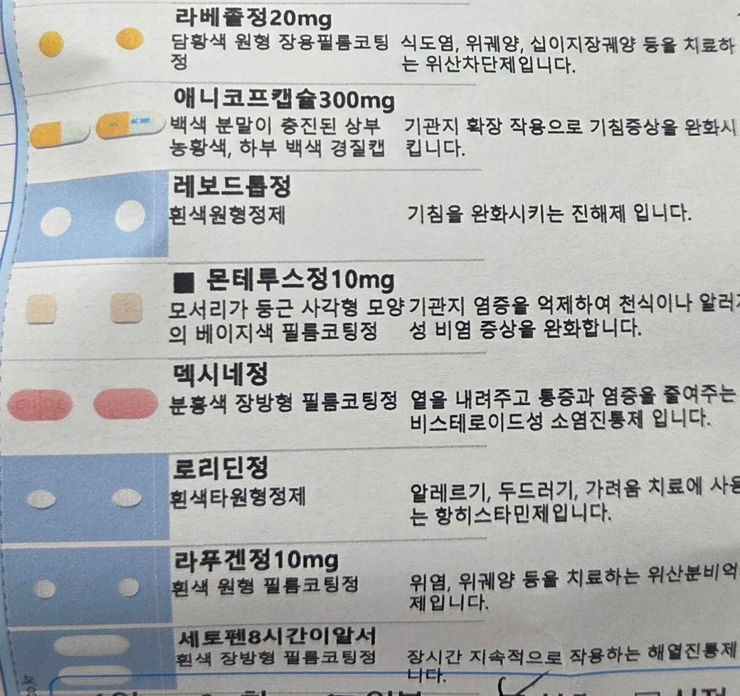 어제 페라미 수액 맞았고 사진의 약들 받아와서 먹었는데 오늘 목이 더 부어서 너무 아프고 귀도아프고 열도 좀 났어요..