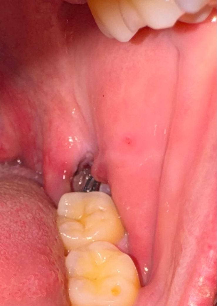 사진으로 봤을 경우에는 발치를 한 후에 생긴 혈병이 탈락된것으로 보입니다. 해당 부위를 자극하지 않는 것이 좋습니다. 해당 부위가 자극이 되어 출혈이 되면 치유가 늦어질 수 있기 때문입니다. 사진으로 봤을 경우에는 큰 문제가 없으니 너무 걱정하지 않으셔도 될 것으로 생각됩니다.