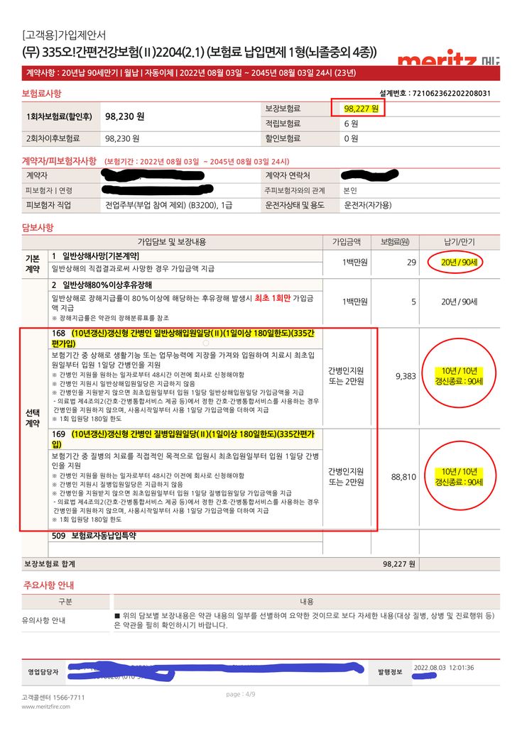 꼭 들었으면 하는 보험은 간병인 지원보험인데 유병자다 보니 가입되는 상품자체가 많지 않고 아래처럼 견적을 받았는데 월