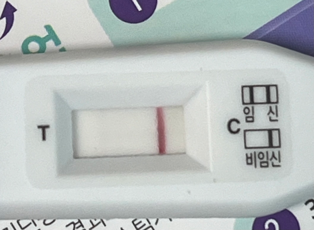 임신테스트기를 7개나 확인하였고 그 중에 1개만 그것도 희미하게 애매하게 두 줄이 나온 상황이라면 비임신이라고 판단하는 것이 더 적절하겠습니다.
