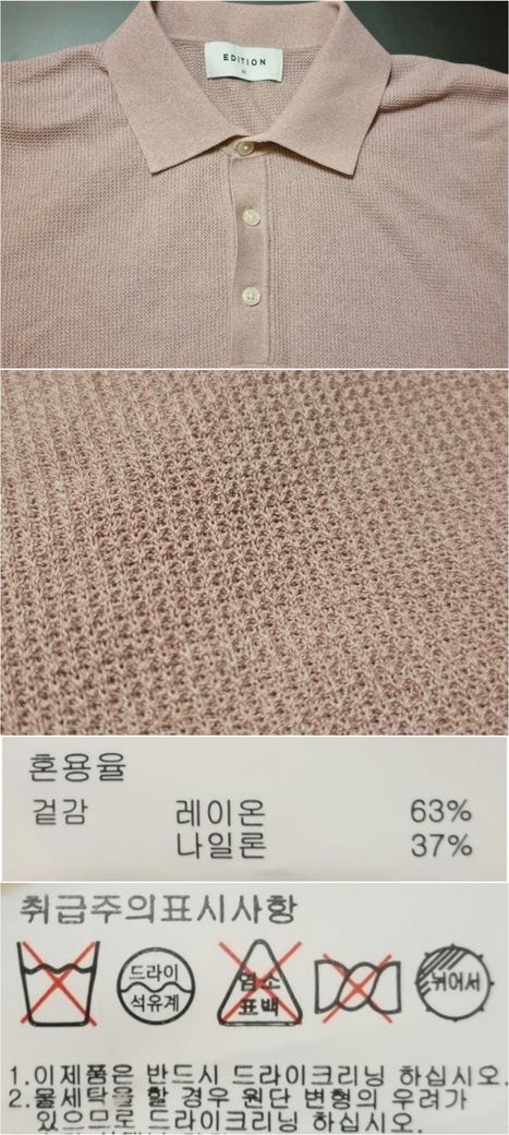 이 옷은 레이온 63%, 나이롱 37% 혼방인데 레이온은 물세탁 시 수축/변향이 쉽게 일어나는 섬유라서 라벨에 반드시 드라이클리닝을 권장하는 겁니다.