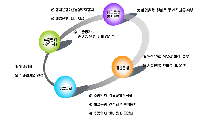 신용장 베이스 대금결제과정을 신용장 거래당사자와 함께 설명이 가능할까요?