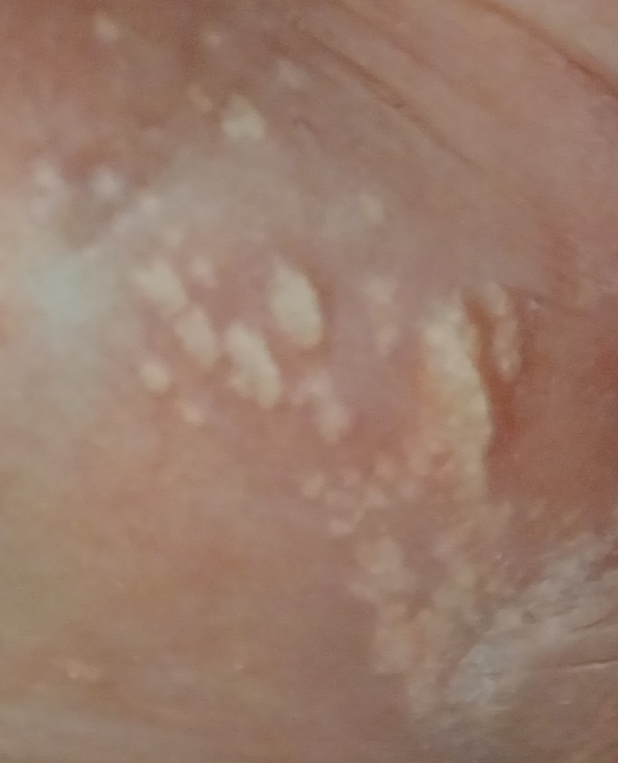 해당 사진만으로 정확한 진단은 어렵지만 곤지름 등의 가능성도 있기 때문에 보호자 분께 말씀드리고 산부인과에 내원해 보시는 것을 추천드립니다.