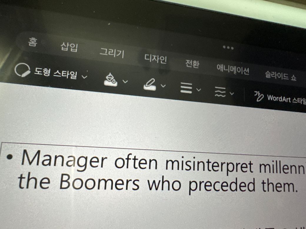 파워포인트로 무언가를 작성중인디..