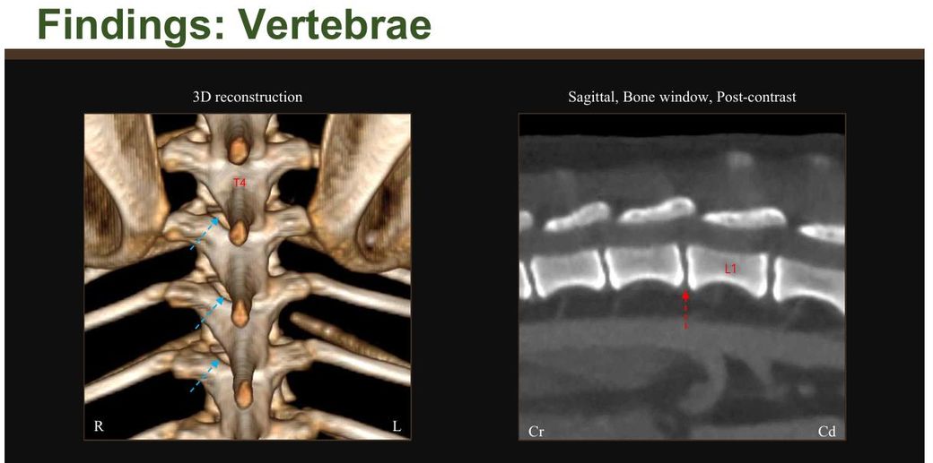 • T4-6 vertebrae의Rt. caudal articular process의dysplasia 확인되며, congenital