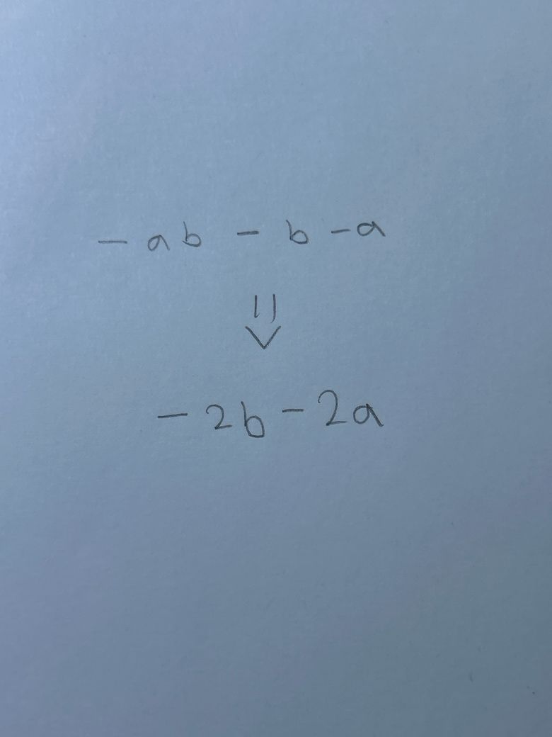 -ab-b-a 는 -1 × ( a × b ) -1 × ( b + a ) 이기 때문에,