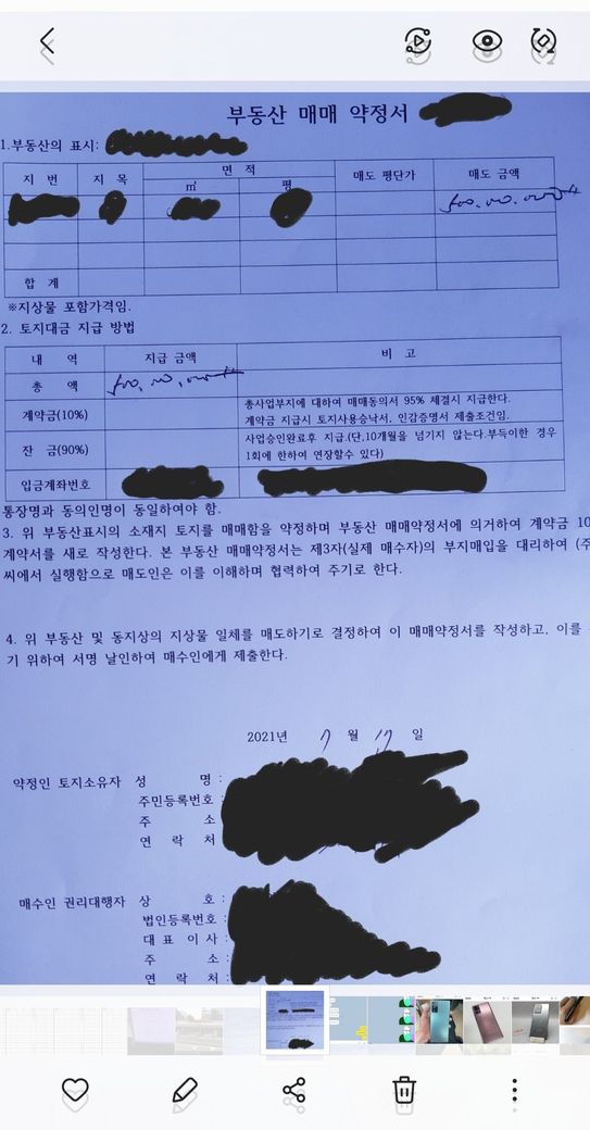아래사진처럼 매매 약정서를 작성하고 싸인해둔 상황입니다.