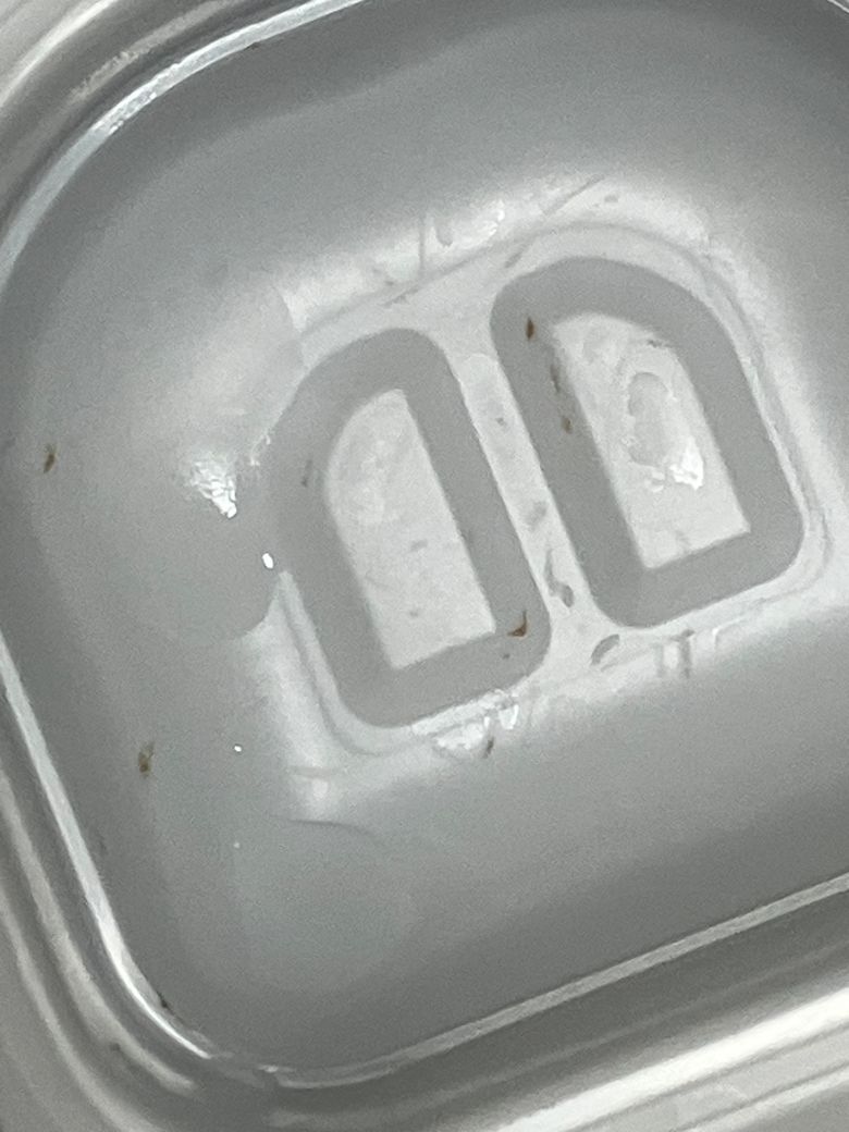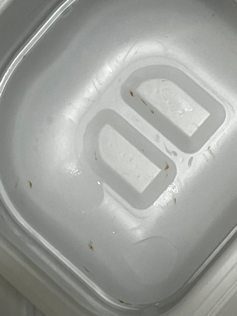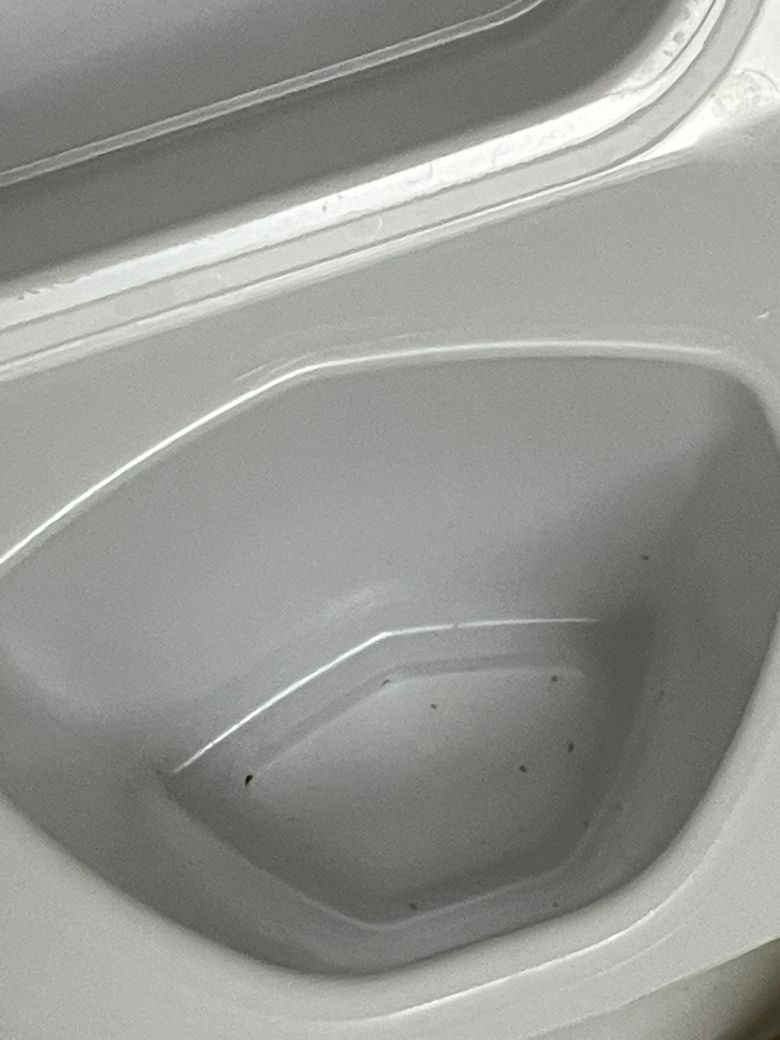 안녕하세요 제가 아침에 쓰레기 버리는 걸 까먹고 외출 후 돌아왔는데 깨끗했던 빈용기에 작은 점 같은게 있는데요 이거 혹시 바퀴 똥이나 알일까요? ㅠㅠ