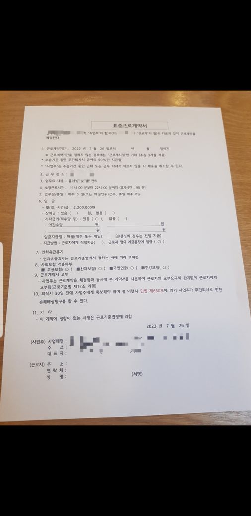 근로계약서 관련해서 질문있습니다