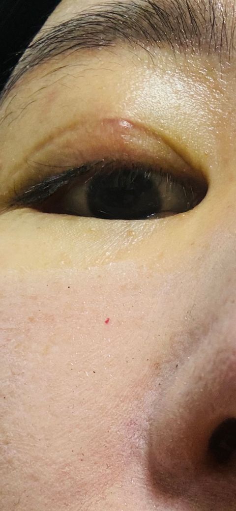 최근에다래끼가나서 치료중인데 거의다낫긴했는데 빨간게 동그랗게있는데 이게 피부가쭈글쭈글하고변색된건지 아직다래끼가남아있는건지 모르겠습니다