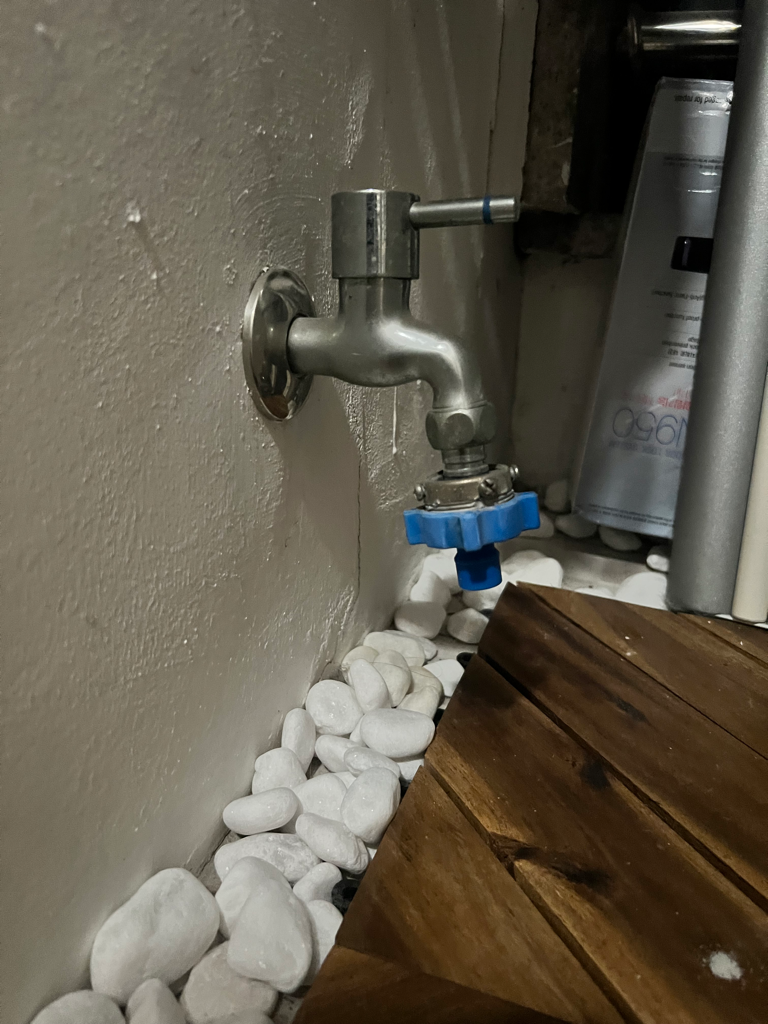 손잡이 형태로 주먹을 쥐면 물이 나오고 손을 펴면 물이 잠기는 분사노즐이 있어요