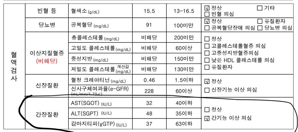 건강검진을 받았는데 이미지 수치처럼 간기능 이상의심이 된다는 내용을 받았는데