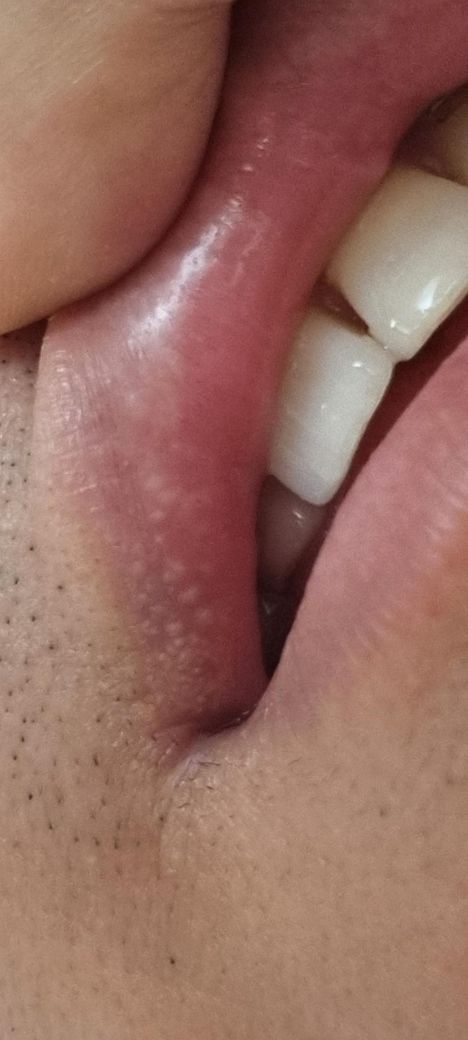 얼마전에 이런 모양의 하얀점들이 생겼습니다. 통증은 없고 양치하다가 우연히 발견했는데 이게 무엇인지 궁금합니다. 헤르페스? 뭐 이런건 아니겠지요? 세균이나 바이러스, 알러지 때문인건지.. 발견한지 2일정도 됐는데 잘아시는분 답변 부탁드립니다.