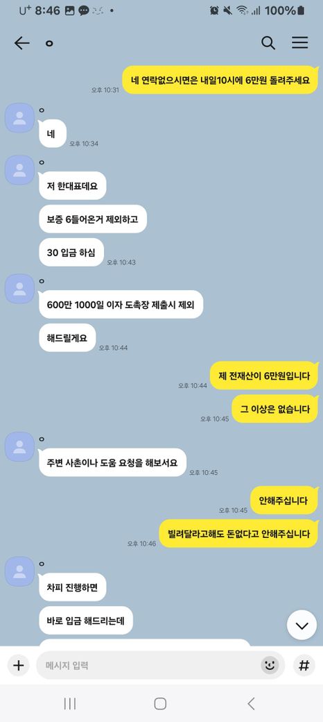 연락을 했습니다 이런저런얘기하다가 대부업체분이 계속매달리고 그리고 제가 돈이없다고했습니다