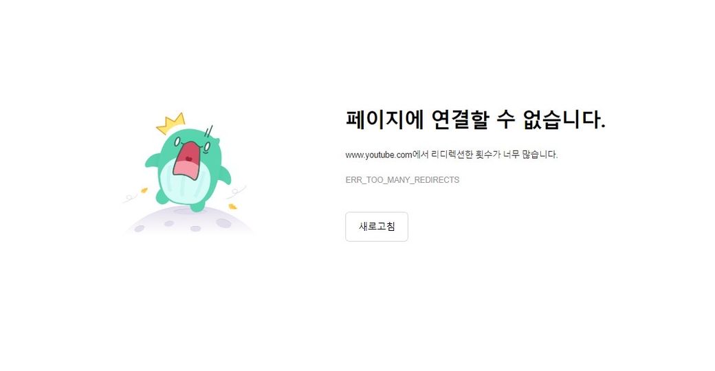 www.youtube.com에서 리디렉션한 횟수가 너무 많습니다.