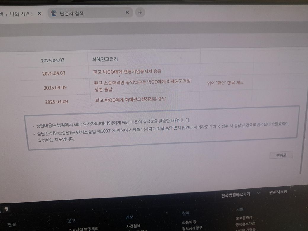 민사 화해권고결정정본 송달이 왔는데요