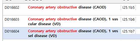 아래 사진이 저희 병원에서 사용하는 진단코드인데 끝에 b6, b7 이런 코드는 세부 사항이고 병원마다 조금씩 달라서 그 앞에 있는 I25.1이라고 생각하시면 되겠습니다.