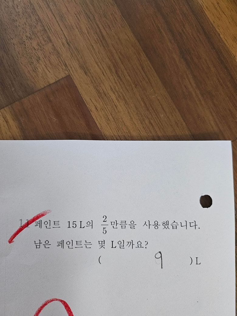 4. 15 * 2/5 = 6L 사용하여 남은건 9L