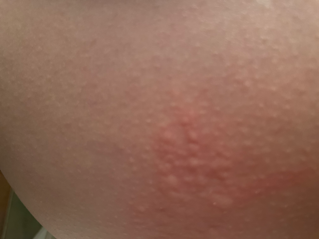 통증을 유발하지 않는다면 잘 보습해주시고 알레르기약 정도 복용해보실 수 있겠는데, 잘 해결되지 않거나 통증을 유발하는 등의 문제가 있다면 대상포진의 가능성도 배제할 수 없겠으니 피부과 진료를 받아보시기 바랍니다.