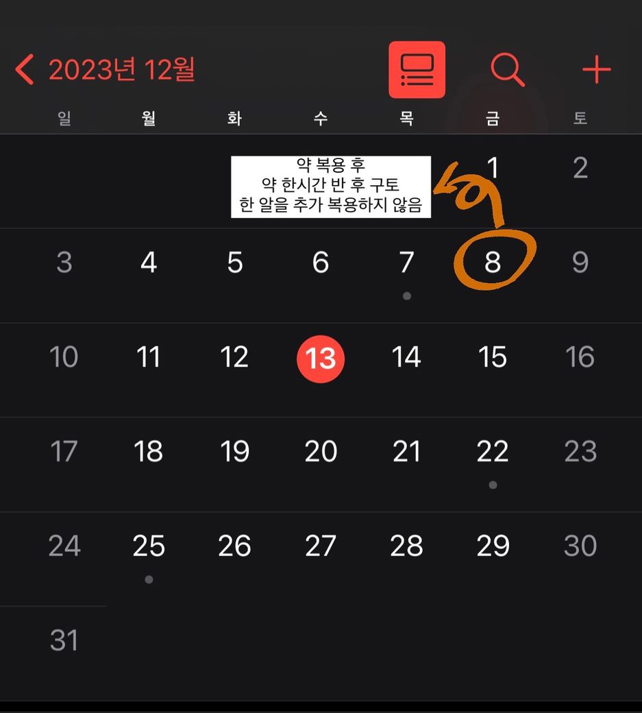 그런데 12월 8일, 술을 조금 많이 마시게 되었고 약 먹는 시간인 저녁 10시에 약을 복용한 후, 약 11시 30분 경 구토를 하였습니다. 이 당시 저는 구토를 하면 약 한 알을 재복용해야한다는 사실을 몰라서 재복용을 하지 않았습니다. 그럼 하루를 빼먹은 셈이 되는 건가요?