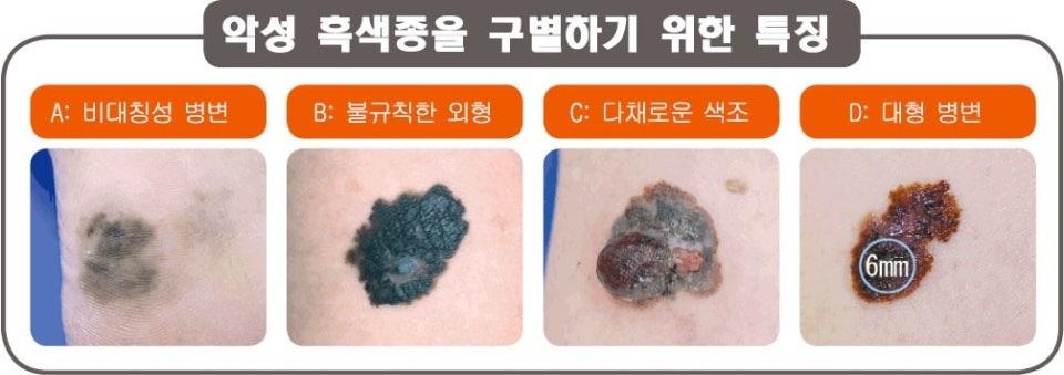 아래 사진과 같은 흑색종의 특징을 보이지 않기 때문에 문제가 없는 점이라고 보시면 되겠습니다.