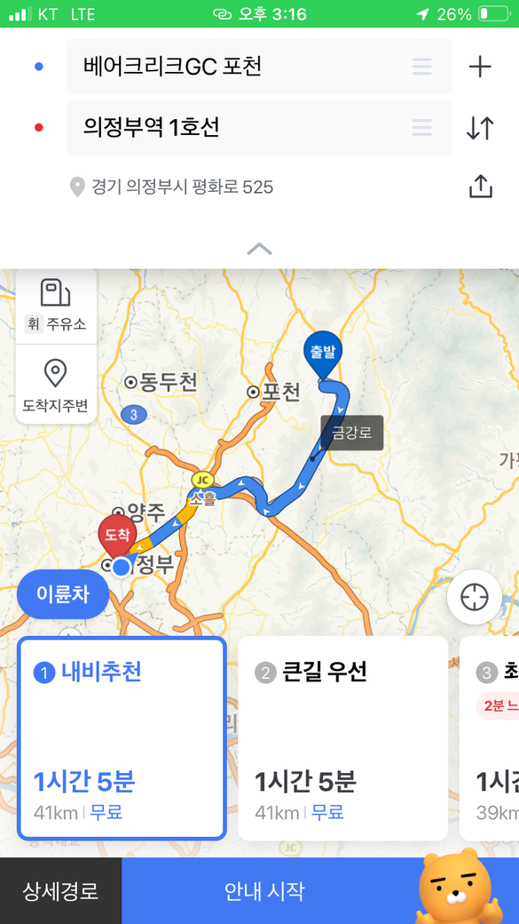 이륜차로 설정해놓고 출발하시면 자동차전용도로랑 고속도로는 배재하고 오토바이에 맞게 경로설정을 해줍니다.
